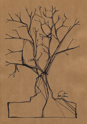 For a few years I fell in love with drawing trees… I had a few solo exhibitions of trees and I also make greeting cards of trees and more trees… I don’t think I’ll ever stop as I find it meditative and the symbolic aspect quite grounding… Family, Roots, Resources, Branching, Fruitful, Soul… Nature..